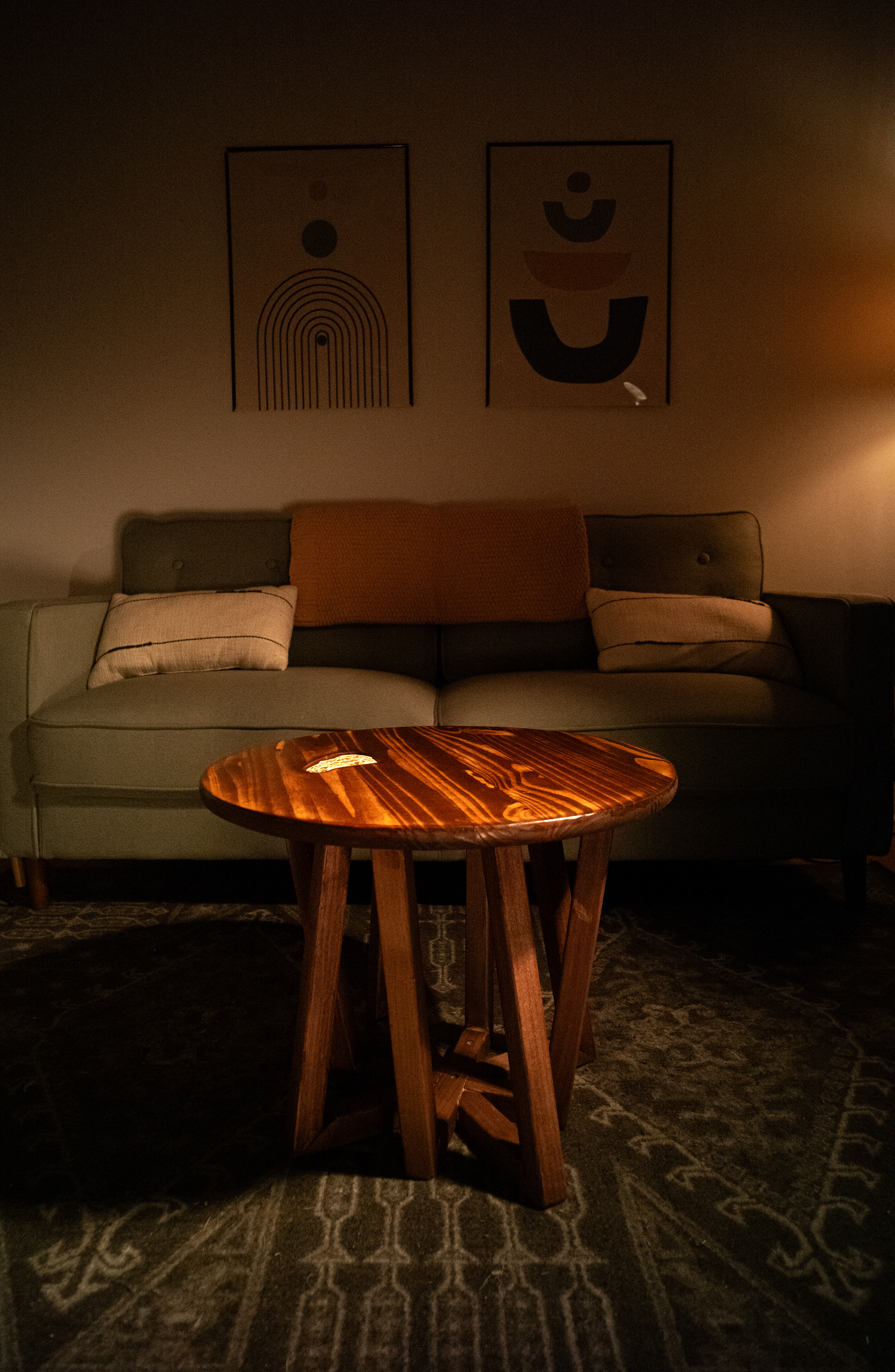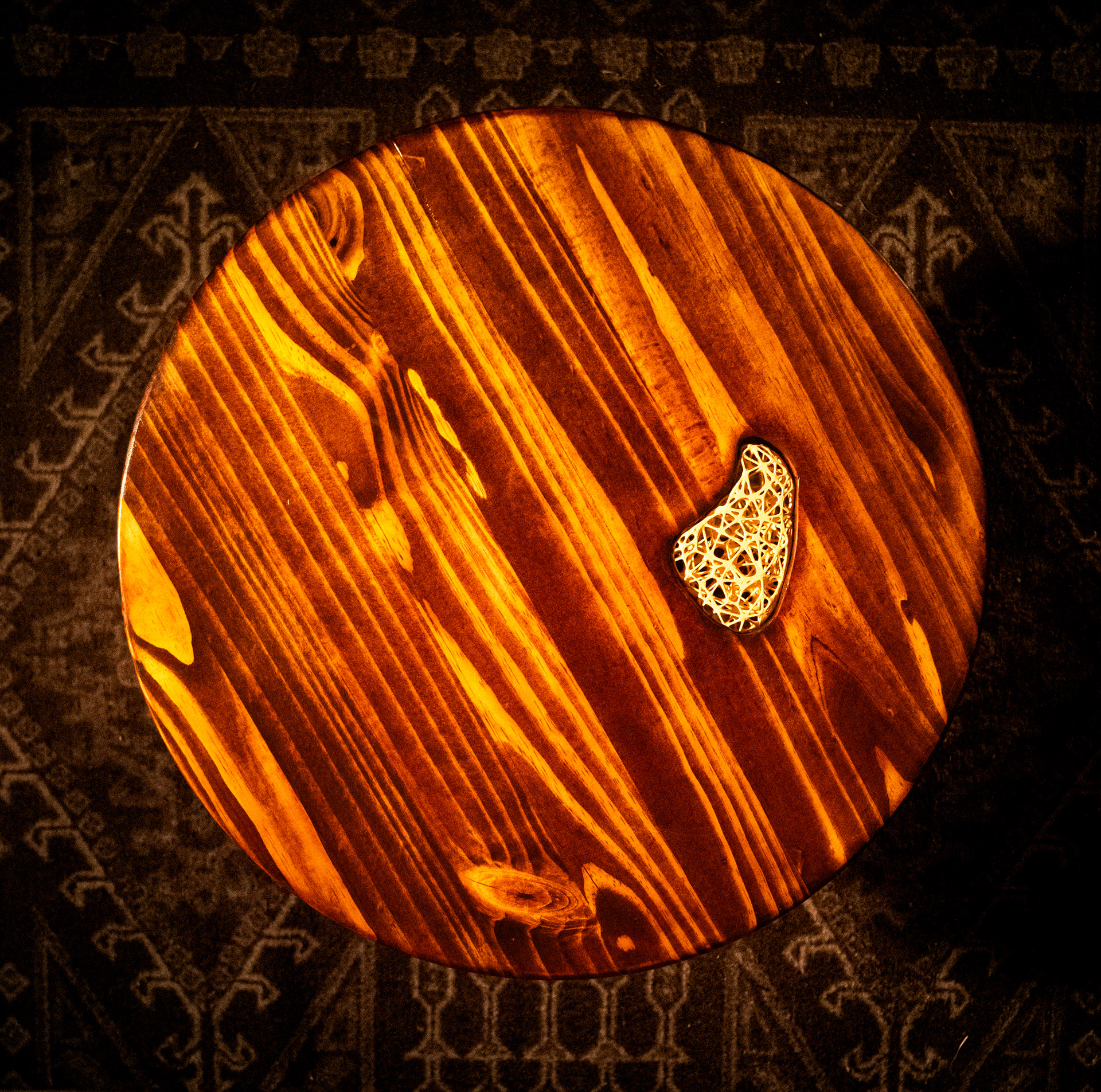 Pine and poplar coffee table with a mahogany stain and a Voronoi fracture